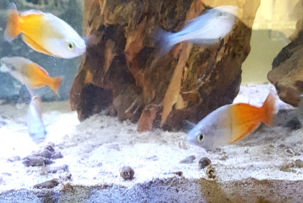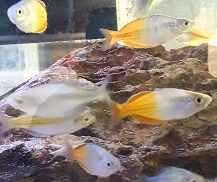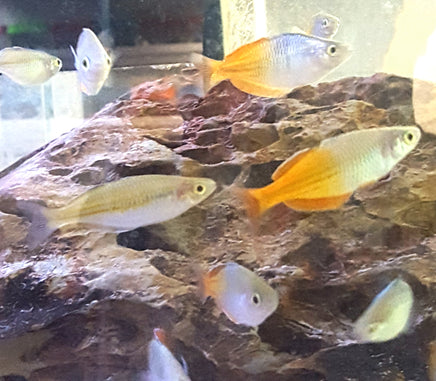 The color pattern is completely different from most other forms of rainbowfish, as it has a half orange-red rear and a bluish-grey or purple front which in some specimens is almost defined perfectly. M. boesemani will often grow to lengths that exceed 10 cm (3.9 in) if given the right food and water conditions. Like most rainbowfish they are capable of adjusting their color intensity. Their color intensity may be a sign of mood or health. Generally more intense is seen during night time. They are kept best in groups due to their community and friendly nature and can be easily kept with many different species of fish, including some tetras. They are a relatively hardy fish that prefer weakly alkaline pH conditions. Good tank mates include other rainbowfish, barbs, tetras, corydoras, snails, gouramis, danios, discus, guppies, swordtails, and loaches. However, smaller freshwater shrimps in the Caridina and Neocaridina genus may be viewed as prey. Ghost shrimp, vampire shrimp, amano shrimp and bamboo shrimp can live with them. Always adult shrimps are added first then baby rainbowfish. Care must be taken to give hiding places for shrimp and open spaces for rainbowfish.